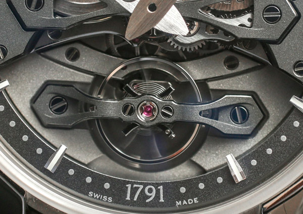 在腕表的6点钟位置,设置的是直径 0.15 毫米的可变惯性摆轮,振动频率高达 3 赫兹(每小时振动 21,600 次),由于摆轮的体积特大,这款腕表更能抵御冲击,带来更精准的报时功能。 崭新先进的技术表现与成熟的设计美感互相辉映,整个表盘极具特色和吸引力。在表盘下方有“SWISS MADE”和“1791”的字样,彰显了瑞士制造的高品质和品牌超过 225 年的制表历史。