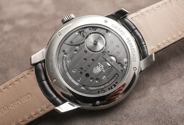 腕表的正面设计精密细腻,不仅提供充足的读时空间,208 件零件组成的机械结构更是一览无遗。和表盘的正面相比,腕表的背部反而更加低调。透过蓝宝石水晶表背我们可以看到,机芯虽然经过精心的修饰,例如日内瓦条纹、太阳纹等,散布的红宝石也异常美丽,但总的来说还是比较朴实低调的。虽然像朗格那样翻过腕表,背面美轮美奂的机芯给人以惊喜,但芝柏表这样正面就给你震撼背面低调的也是一种手段,中国不是有句话说“富贵不还乡,如锦衣夜行”吗?换句话说,好东西当然要亮出来!