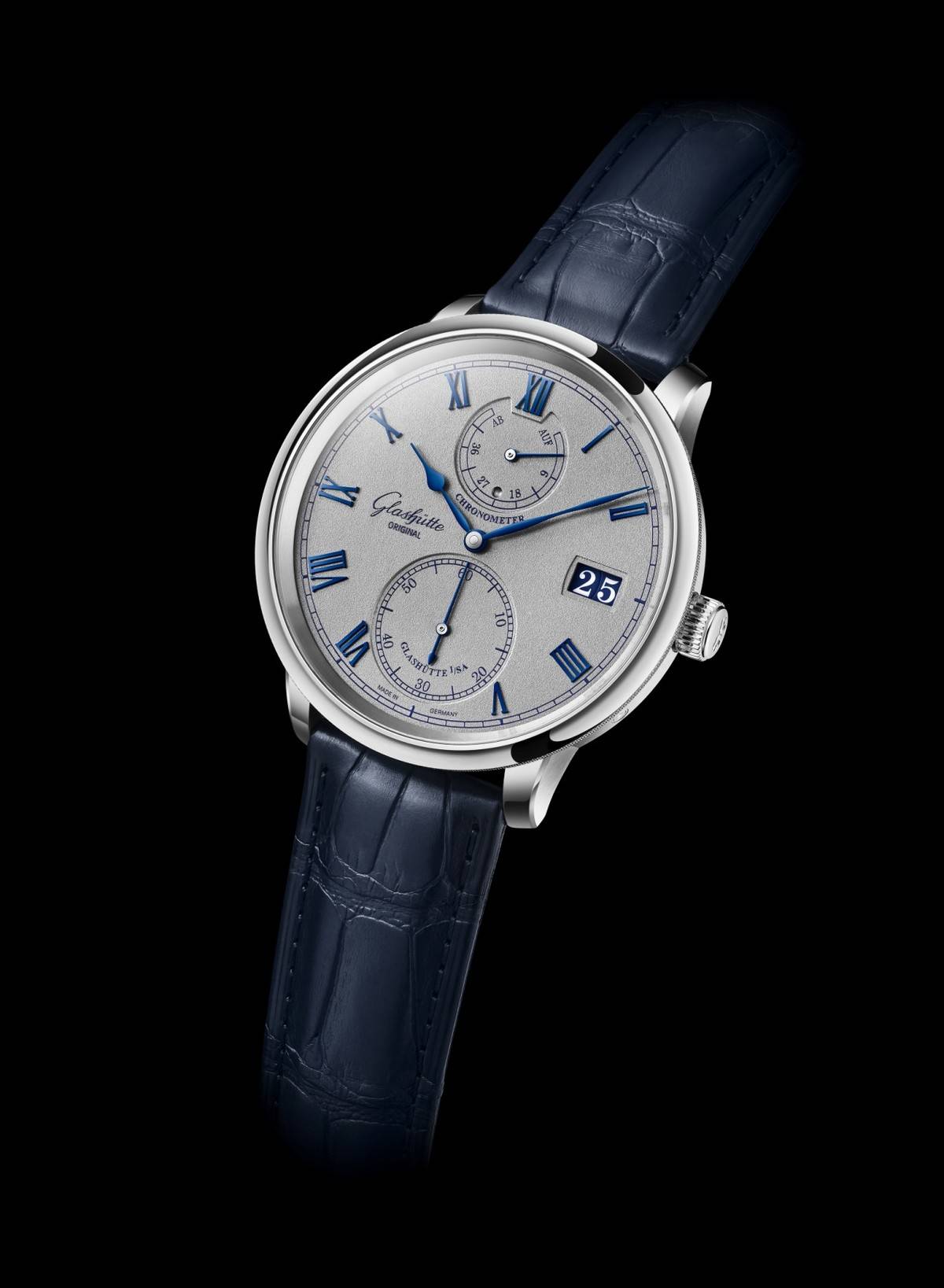 酷炫银色与深蓝色调的和谐共舞——格拉苏蒂原创推出新款Senator Chronometer议员天文台腕表,玩转全新色彩组合,宛若掀起深海的汹涌波涛。与历史表款一样,新款时计结合了出色精密的机械与简洁明了的设计,让时间一目了然。作为来自格拉苏蒂小镇享负盛名的精准时计的最新代表作,Senator Chronometer议员天文台腕表承继历久弥新的传统,非凡渊源和原创精髓淋漓尽显。