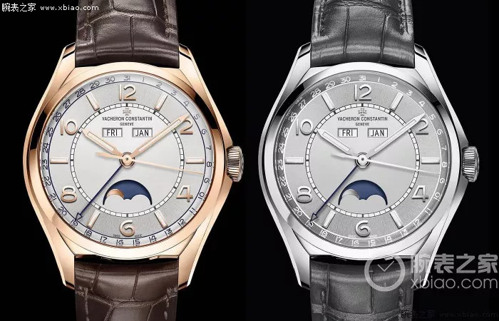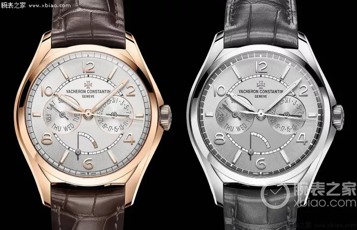 江诗丹顿新款56星期日历,金壳(左)和钢壳(右)