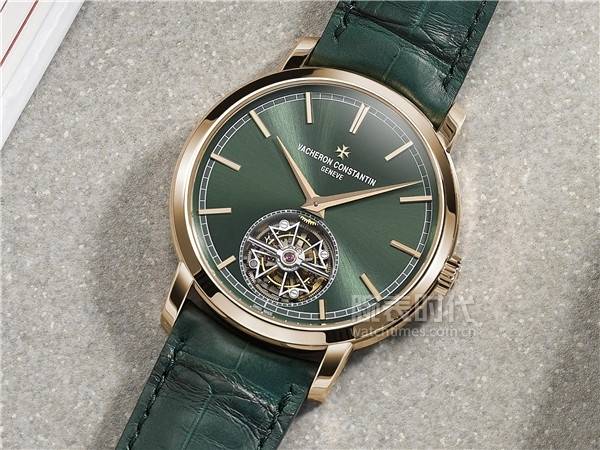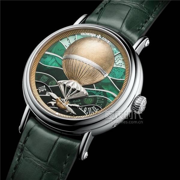 江诗丹顿于2018 SIHH推出的艺术大师系列巴黎1784热气球腕表 刨除个别不能算是纯粹“绿表”的艺术腕表作品,江诗丹顿是至今少有的没有做过“绿表”的腕表品牌。不过,这一说法在今天被打破——江诗丹顿于2021年11月29日发布了Tradtionnelle传袭系列陀飞轮中国限量款腕表。这款腕表采用绿色表盘搭配绿色表带,是一款纯粹的“绿表”。