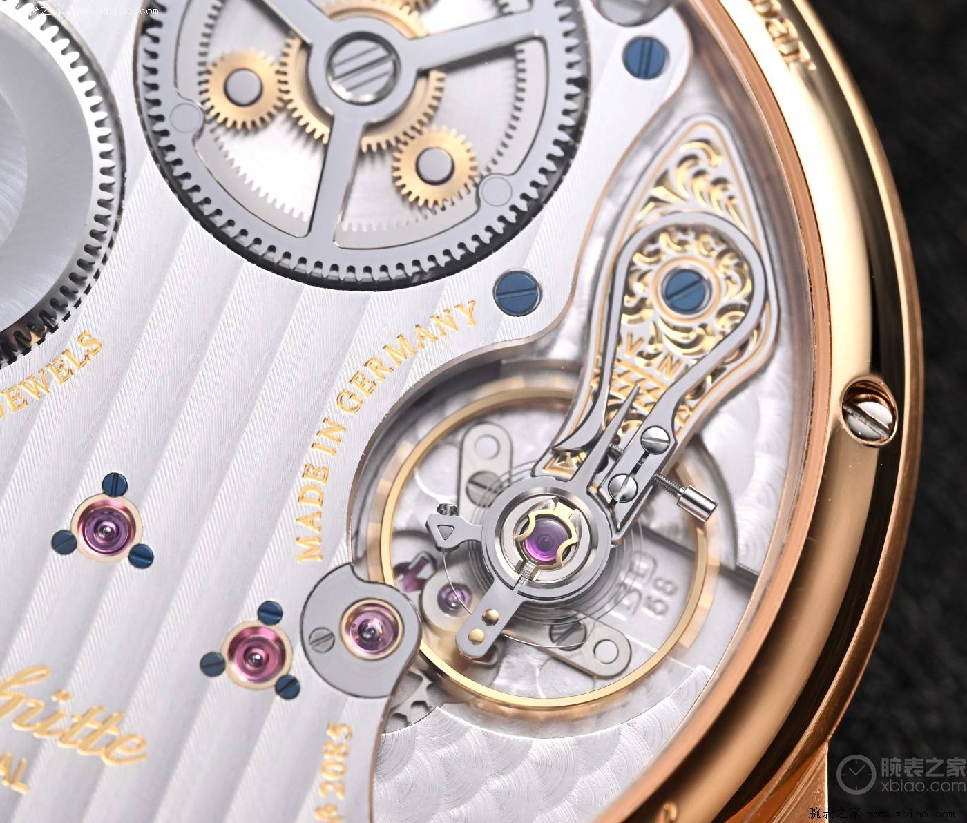 这款表使用了GO的58系列手动机芯,这款机芯作为GO最高等级的手动机芯之一,德国机芯常规的配置我就不多说了,我主要说一下它的动力机构,德国表有一个特点,就是特别喜欢把简单的事做的很复杂,从而彰显他们在细小零件处理上的娴熟技艺!