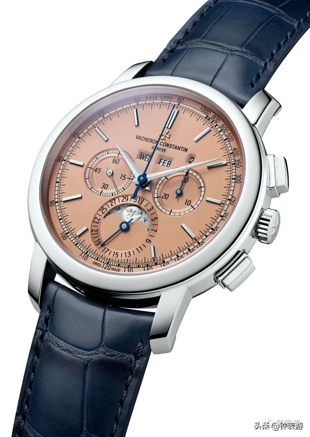 3 43毫米的Traditionnelle传袭系列万年历计时腕表,铂金表壳、极其复古的鲑鱼色表盘和万年历与计时合体的复杂功能,注定它出产稀有。